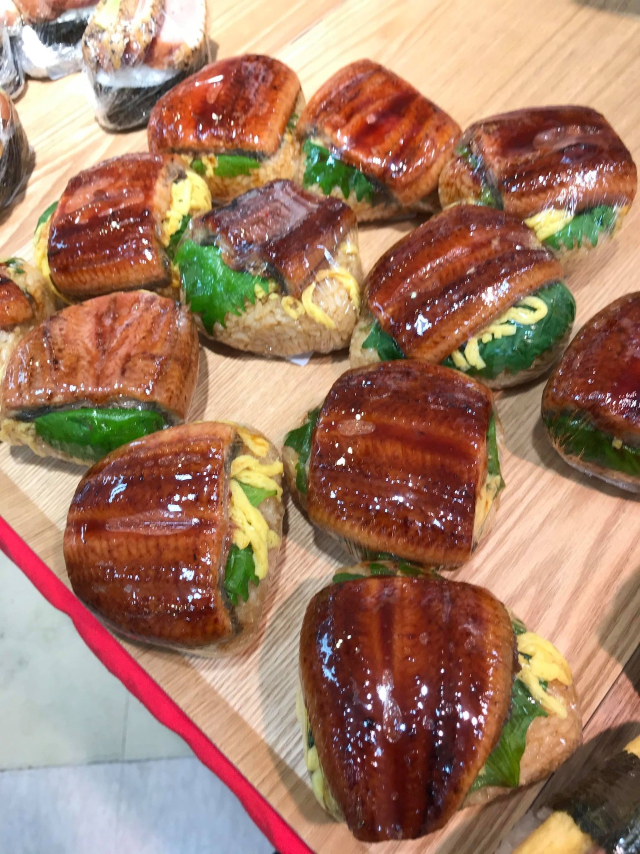 ・豚角煮煮玉子 ・厚切りスパム ・厚切りベーコン ・うなぎ ・カモネギ ・まるごと明太子 ・焼サバ明太チーズ ・ぎゅっと牛肉 ・鮭といくら ・大海老天 具しか見えないボリューム満点のおにぎり! 勢ぞろいです!