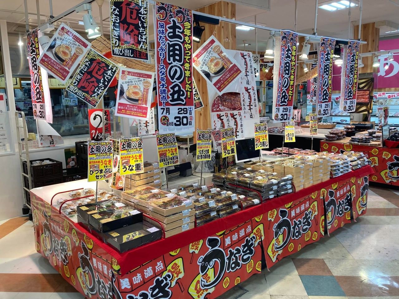 惣菜コーナーでは鹿児島産の鰻を使った メニューをズラッと販売.